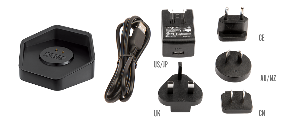 Charging is a breeze with the Sound BlasterAxx Docking Base. Simply place your Sound BlasterAxx AXX 200 on the docking base, and remove it when charging is done. There's no need to fiddle with any plugs or cables.